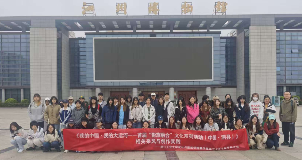 作为浙江省属重点、“省部共建”高校,浙江工业大学设计与建筑学院依托扎实的学科实力和前瞻的设计理念,组织师生深入安徽泗县开展实地采风与创作实践。师生团队沿运河脉络,走访了大运河泗县段、生态优美的石龙湖湿地、人文积淀深厚的朱山,以及承载历史记忆的泗州博物馆,并通过品尝地方美食,沉浸式体验泗县的自然景观与人文风情。